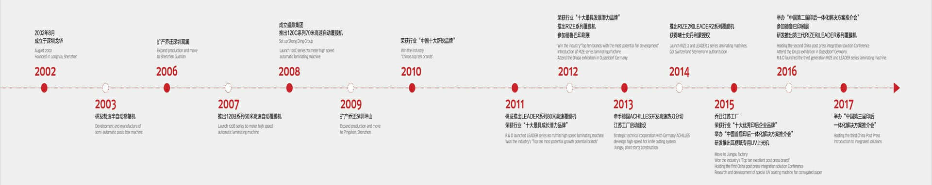“東科機械成立于2002年,是香港盛鼎集團下屬企業之一,并于2013年全資投資建設江蘇工廠,并注冊鹽城東科機械科技有限公司,占地60畝,建筑面積20000平方。公司為一家集設計研發、生產制造、銷售服務為一體的現代化企業,以覆膜機為專業專一產品,主要產品有LEADER系列高速水性干式覆膜機、PEONY系列高速覆膜機、SUNFLOWER系列高速PUR覆膜機、RIZE系列覆膜機及預涂膜覆膜機。東科產品以其卓越的品質、完善的服務、富有競爭力的價格,成為眾多企業的首選品牌。通過與國際知名企業的長期合作,現代東科不斷豐富自己的產品體系,建立了一套嚴謹的質量管理體系,可保證現代東科的產品品質達到國際同行業的先進水平。